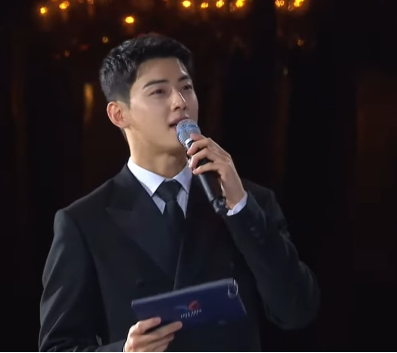 軍服務中のチャウヌ(ASTRO)が31日、キョンサンブクド(慶尚北道)キョンジュ(慶州)市のラハンセレクトホテルで開催された「2025アジア太平洋経済協力(APEC)首脳会議」歓迎晩餐会で司会を務めました。