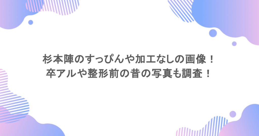 今回は杉本陣さんのスッピン画像や昔の画像、そして整形疑惑についてまとめていきます!