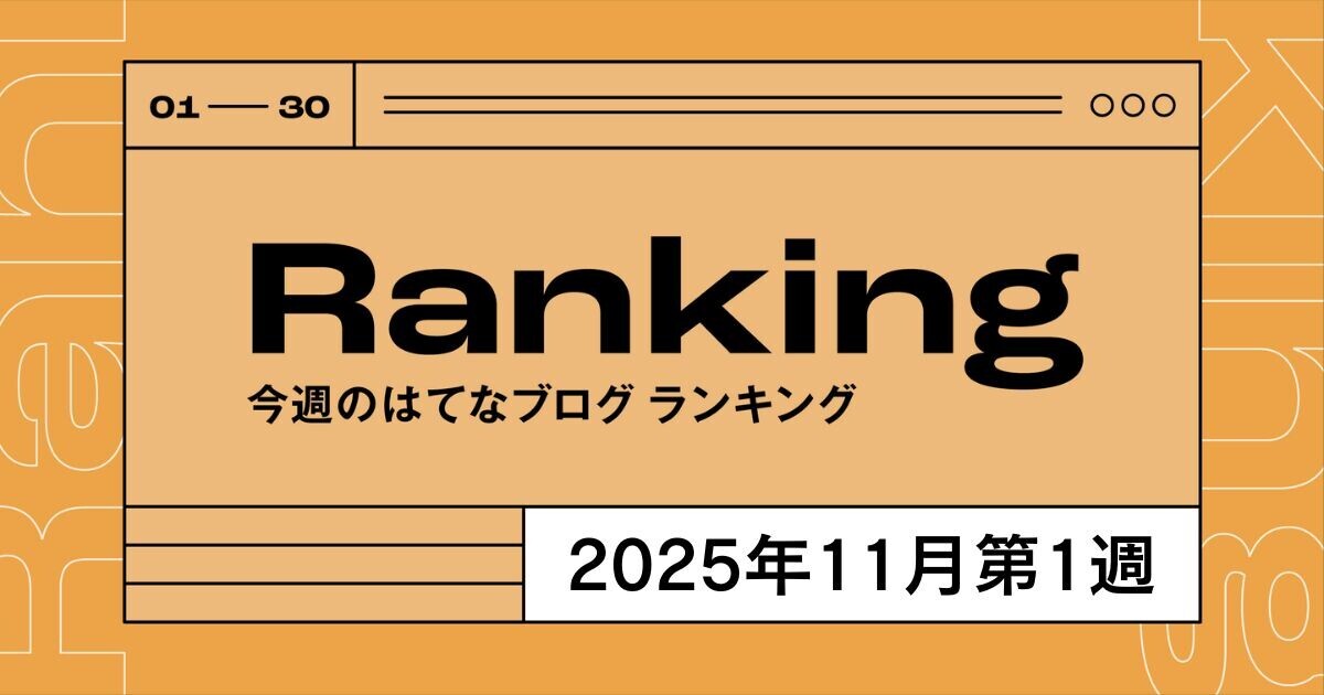 はてなブログ独自の集計による人気記事のランキング。2025年10月26日(日)から2025年11月1日(土)〔2025年11月第1週〕のトップ30です*1。