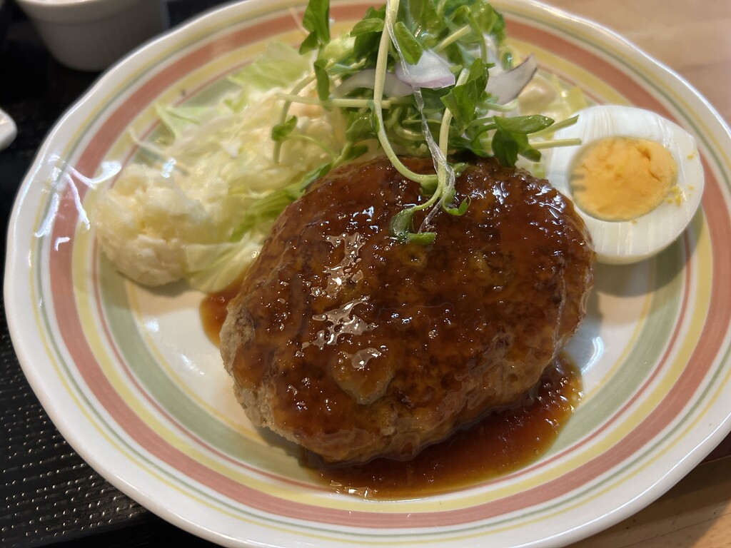 ハンバーグおろしソース、小鉢3種、お味噌汁、ごはん、香の物のset
