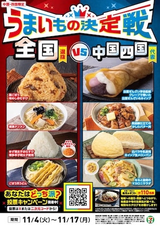 セブン-イレブン・ジャパンは、11月4日(火)〜17日(月)の14日間、中国・四国エリア(※1)にて、なると金時や白バラ牛乳など地元の味を生かした4品を販売している。