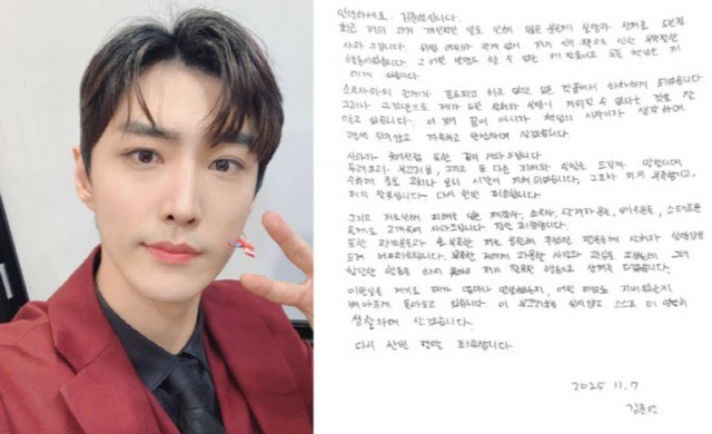キム・ジュニョンは7日、自身のSNSアカウントにアップした直筆の謝罪文に、「最近、私の過去の個人的なことにより、多くの方に失望と傷を与えた点を謝罪する」と明らかにした。