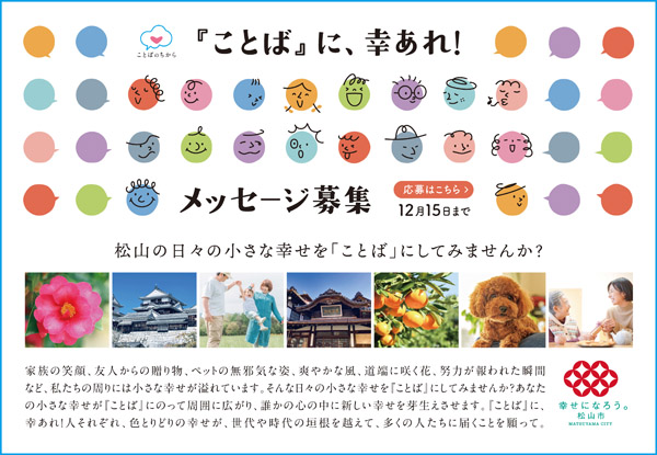 「幸せになろう。」メッセージ募集特設ページ:https://www.city.matsuyama.ehime.jp/shisei/machizukuri/kotoba/siawase_massage.files/chirasi.pdf