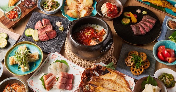 季節の味覚を一度に楽しめる「炉端BeeN」のコース料理は、旬の食材を活かした3種類が用意されている。どのコースも2時間飲み放題付きで季節の味覚を堪能できる。