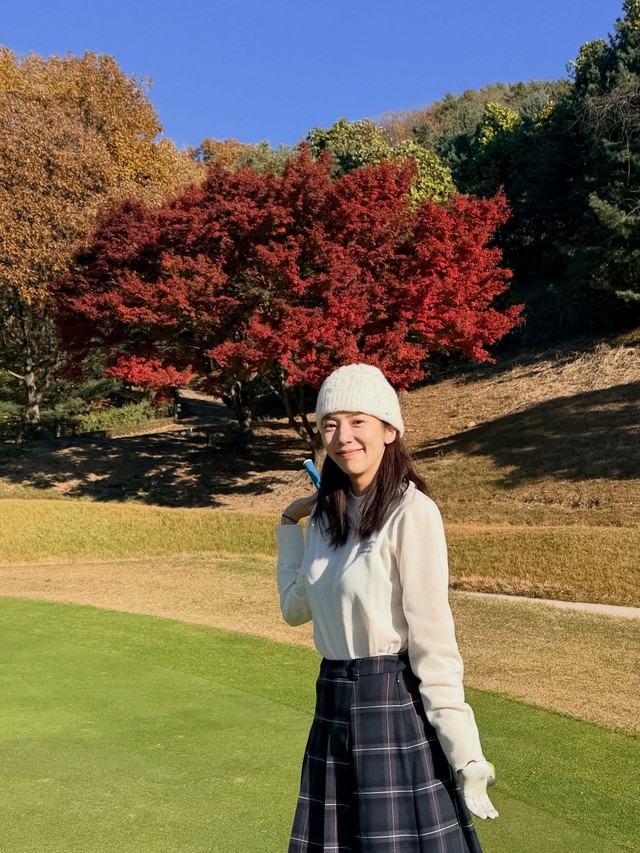 公開された写真の中には、ソン・ダムビが秋のラウンドを出た姿が写っている。 ニットに長いプリーツスカートを着てゴルフクラブを持ったソン・ダムビの上品な姿が感嘆を誘う。 出産前の姿に完ぺきに戻った様子だ。