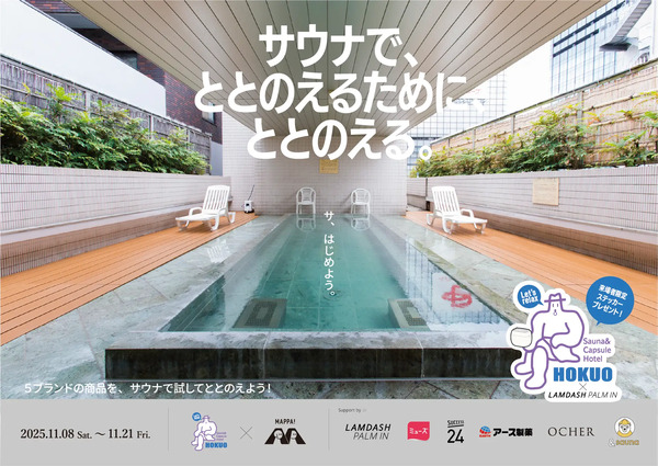 温浴施設特化型メディア「マッパ!」を運営する日本一が、11月8日(土)〜21日(金)の約2週間、東京・上野にある「サウナ&カプセルホテル北欧」にて、サウナや「ととのえる」という概念と高い親和性を持つ企業・ブランドと連携した体験型展示イベント「サウナで“ととのえるためにととのえる”」in サウナ&カプセルホテル北欧を開催する。