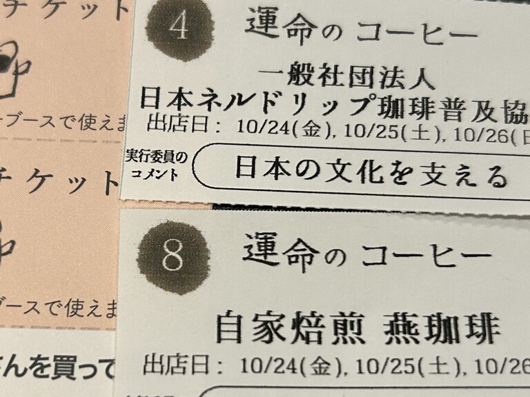 受付でチケットを購入して各店舗で珈琲を頂きます