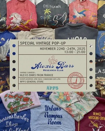 多数のヴィンテージを所有しているヴィンテージコレクターALEX氏をスペシャルゲストに迎えた「Special Vintage Pop-Up」が、11月22日(日)~24日(月・祝)の期間、岐阜県美濃加茂市のAPPS GENERAL STORE店内で開催される。