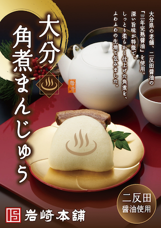 長崎名物「角煮まんじゅう」で知られる岩崎本舗と、大分県別府市のセレクトショップOnsen Dolce(おんせんドルチェ/コーヒー&ジェラート)は、大分県中津市の老舗二反田醤油の特製醤油を使用した「大分角煮まんじゅう」を共同で企画。岩崎食品が製造し、11月12日(水)よりOnsen Dolceにて先行販売を開始している。