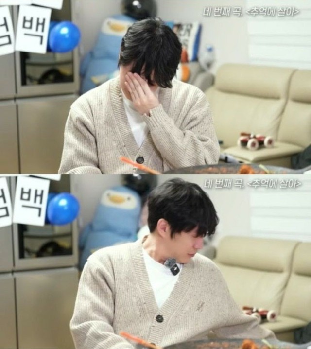 ソン・シギョンは収録曲「思い出に生きて」が再生されると、沈黙したまま音楽に集中し、メガネを外して手にしたティッシュで目元を拭った。一緒にいたキュヒョンはじっと見守った後、慎重に声をかけた。