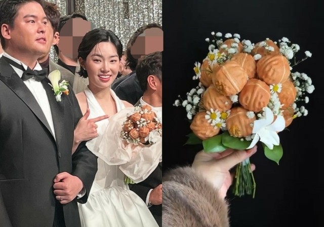 「こんなブーケは初めて」…俳優イ・ジャンウの結婚式に登場した“クルミ饅頭ブーケ”に視線集中