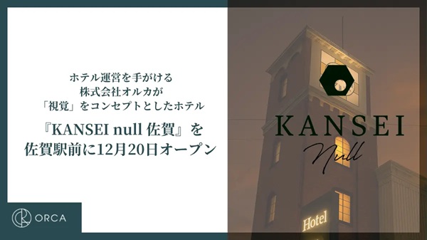 宿泊施設の開発・運営・コンサルティングを事業内容とするオルカは、“視覚”をテーマにした無人ホテル「KANSEI null 佐賀(カンセイ ヌル サガ)」を12月、佐賀駅前にオープンする。