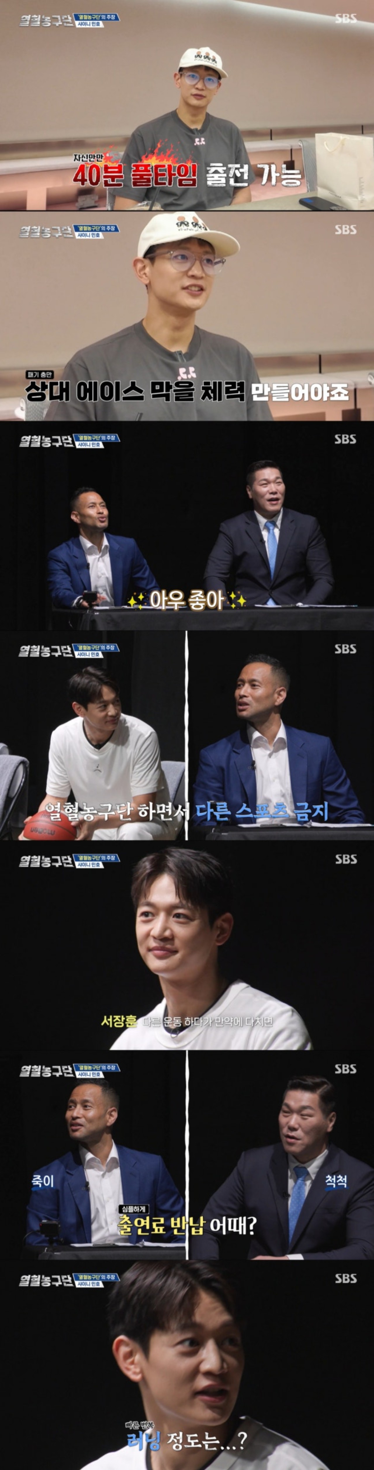 「ほかのスポーツをしたら出演料を返す」と宣言していたチェ・ミンホ。/写真=SBS「熱血バスケ団」キャプチャー