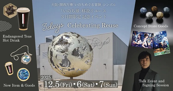 大阪・関西万博「いのちめぐる冒険」の象徴ともいえる“いのち球モニュメント”が、この冬、夢洲から万博記念公園へ移設リユースされる。この移設を祝して、2026年3月1日(日)まで開催されている「河森正治創作展」の期間中、12月5日(金)〜7日(日)の3日間限定で特別イベントを展開する。