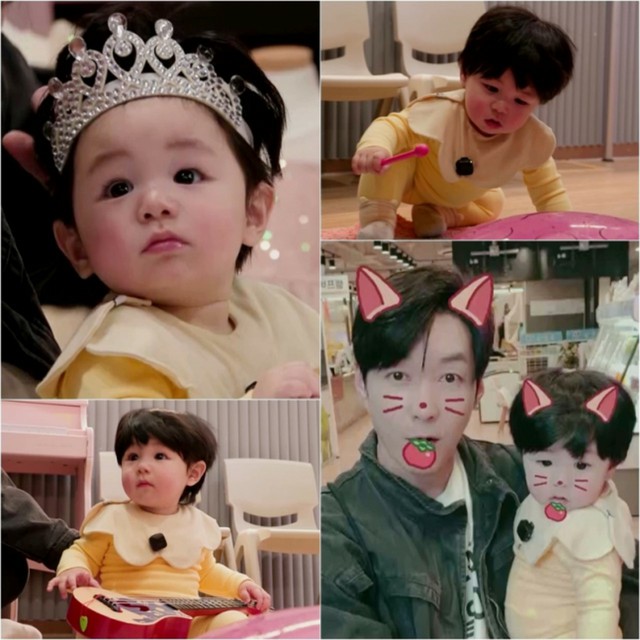 ハルくんは、シム父さんとお揃いの猫変身ステッカー写真を撮るのを始まりに、キラキラと光る王冠をかぶって鏡の前に座り、にっこり笑顔を作っている姿で、特有のおとなしくて従順な性格をそっくりそのまま見せてくれる。
